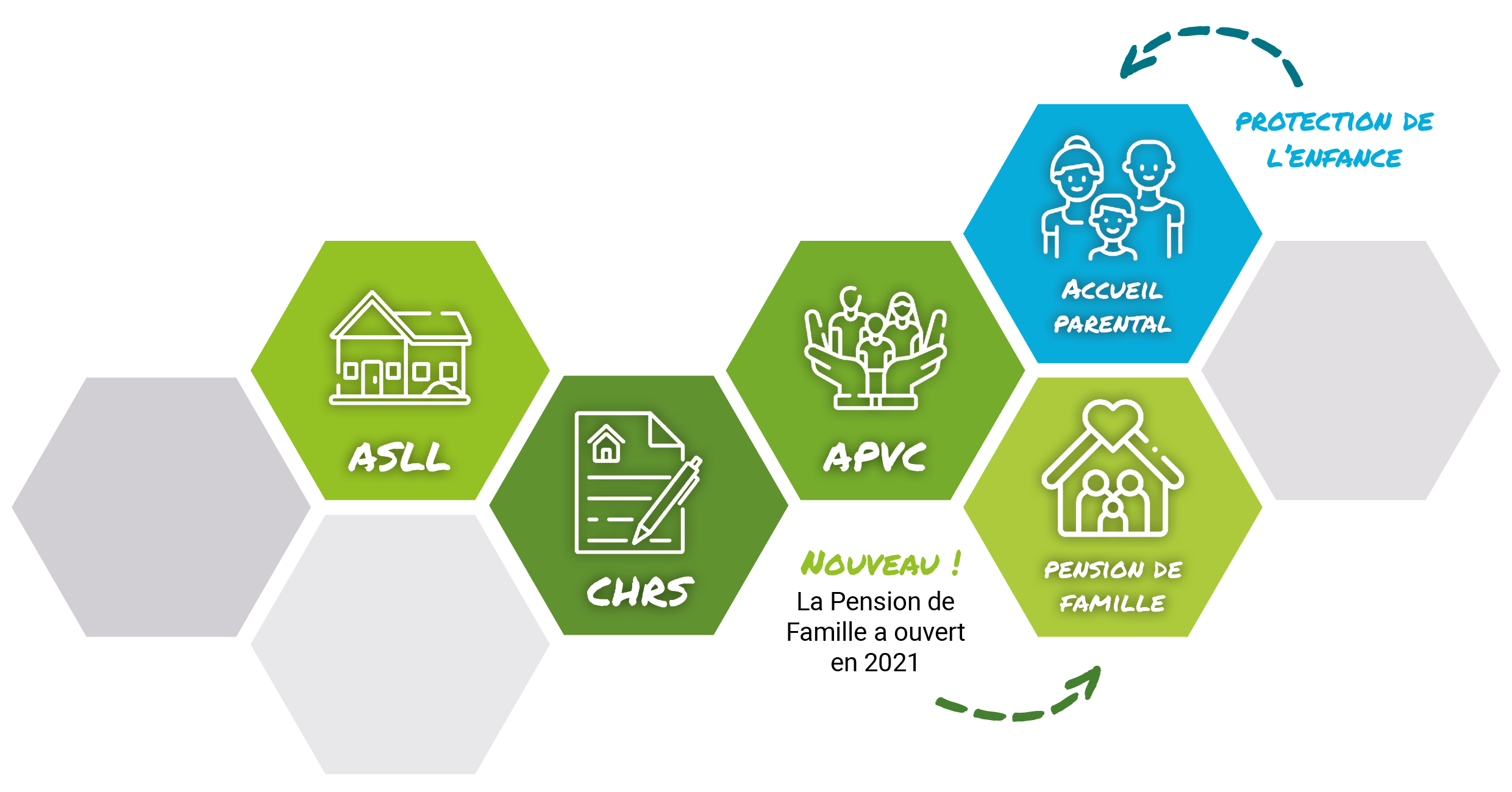 La Pension de Famille est destinée à l'accueil de personnes à faible niveau de ressources, dans une situation d'isolement ou d'exclusion lourde, et dont la situation sociale et psychologique, voire psychiatrique, rend impossible leur accès à un logement ordinaire. Elle accueille des femmes et des hommes âgés de 18 ans et plus et propose une offre alternative de logement pour des personnes en situation de vulnérabilité.