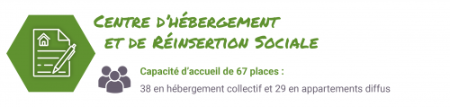Le Centre d'Hébergement et de Réinsertion Sociale (CHRS) assure l'accueil, le soutien et l'accompagnement social, l'adaptation à la vie active ou l'insertion sociale et professionnelle des personnes ou des familles en difficulté. Des places sont également dédiées à l'hébergement des femmes enceintes et mères isolées avec des enfants de moins de 3 ans dans le cadre d'un service de Centre maternel.