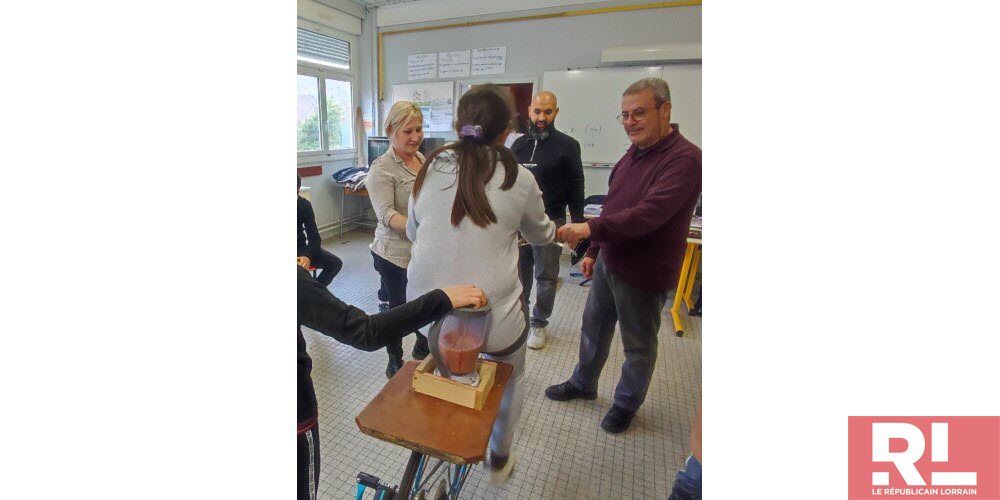 Pour l'action Action vélo smoothie, le collège a pu compter sur un partenaire, le Comité mosellan de sauvegarde de l'enfance, de l'adolescence et des adultes (CMSEA) de Behren-lès-Forbach. Pour cette journée particulière, le CMSEA a mis à disposition des collégiens un vélo spécialement équipé pour la réalisation de smoothie. La particularité de ce vélo : les coups de pédales actionnent un mixeur et permettent de tirer le jus des fruits et légumes. Encadrés par Sophie Jacquillard, professeure, et par les élèves de 3e Segpa, les élèves de 6e ont, à la force de leurs mollets, pu concocter et déguster de délicieux breuvages.