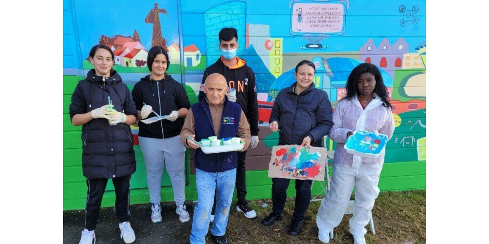 A l'angle de la rue de Champagne, à proximité de l'Atrium, au quartier du Roi, à Woippy, la troisième fresque murale, inspirée de l'habitat du futur, orne maintenant le pignon d'un immeuble collectif. Une fois encore, les jeunes pris en charge par le CMSEA et ceux de l'E2C ont fait preuve d'une imagination débordante. Suivant une démarche bien rodée, ils ont mis en commun leurs idées sur le thème choisi avant de faire des choix en concertation avec l'éducateur spécialisé du CMSEA Duran Boyraz et l'artiste plasticienne Yvette Szakacs. La fresque a été réalisée lors des vacances de la Toussaint. Elle est le fruit d'un partenariat ICF Nord Est et CMSEA pour la conduite d'un programme chantier d'insertion, visant à l'amélioration du cadre de vie. Cette réalisation est le dernier acte du projet global « L'homme et l'habitat ; vivre ensemble » qui a été mené de l'automne 2019 à l'automne 2021. Ce projet d'envergure a débuté par la confection d'affiches, réalisées par les élèves des cours moyen de l'école Jacques-Yves-Cousteau et ont été validées par le bailleur social ICF Nord Est. Celui-ci les a placardées dans ses 33 entrées d'immeubles du quartier du Roi. Puis ce sont les stagiaires de l'E2C qui ont planché sur la conception d'un livret citoyen baptisé « Un pas vers l'avenir » |