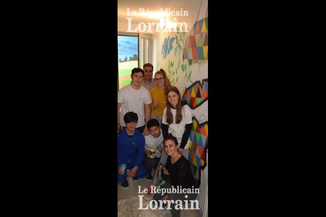 Les jeunes du CMSEA ont décoré l'entrée de leur local situé à l'arrière de la médiathèque avec les conseils de l'artiste Meddy Lorenzini.