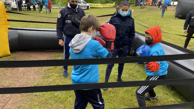 Le but est aussi d'apprendre en s'amusant. Les gestes de premiers secours, comme le massage cardiaque, et, entre une partie de foot ou de laser-game, voire quelques combats de boxe, une démonstration des gestes techniques d'interpellation, où l'on passe de technique de self-défense au… passage de menottes. Mais le tout dans une ambiance des plus détendues.