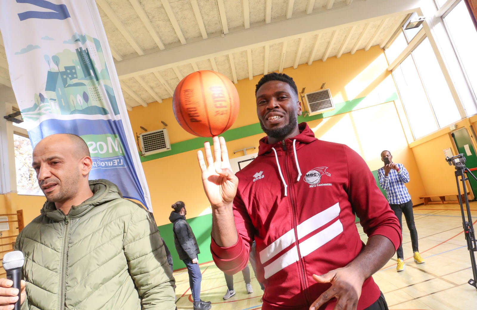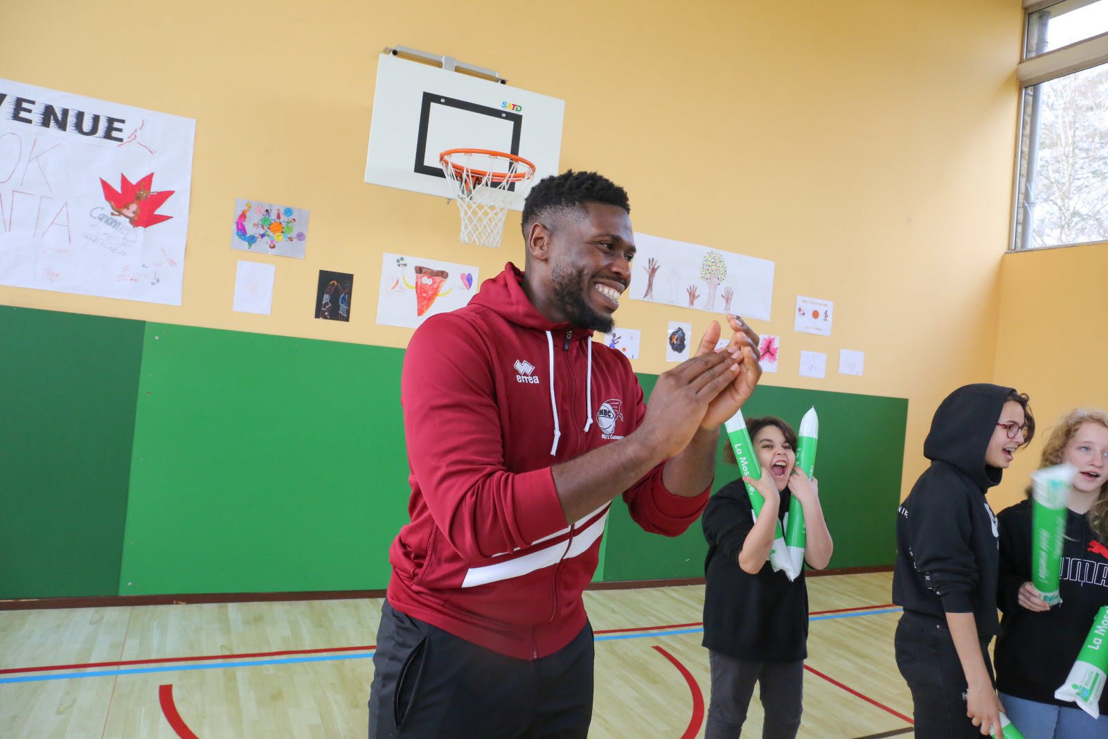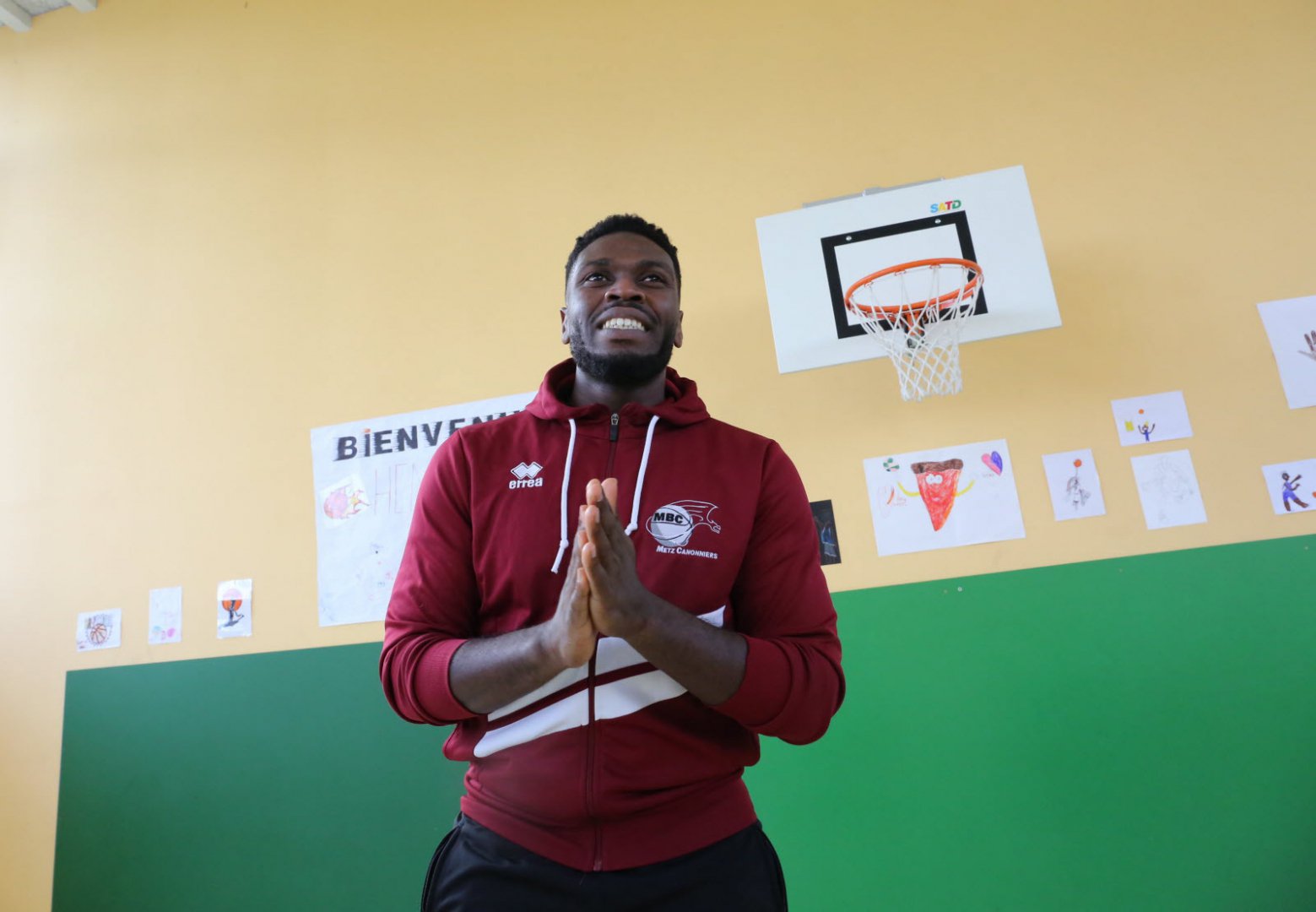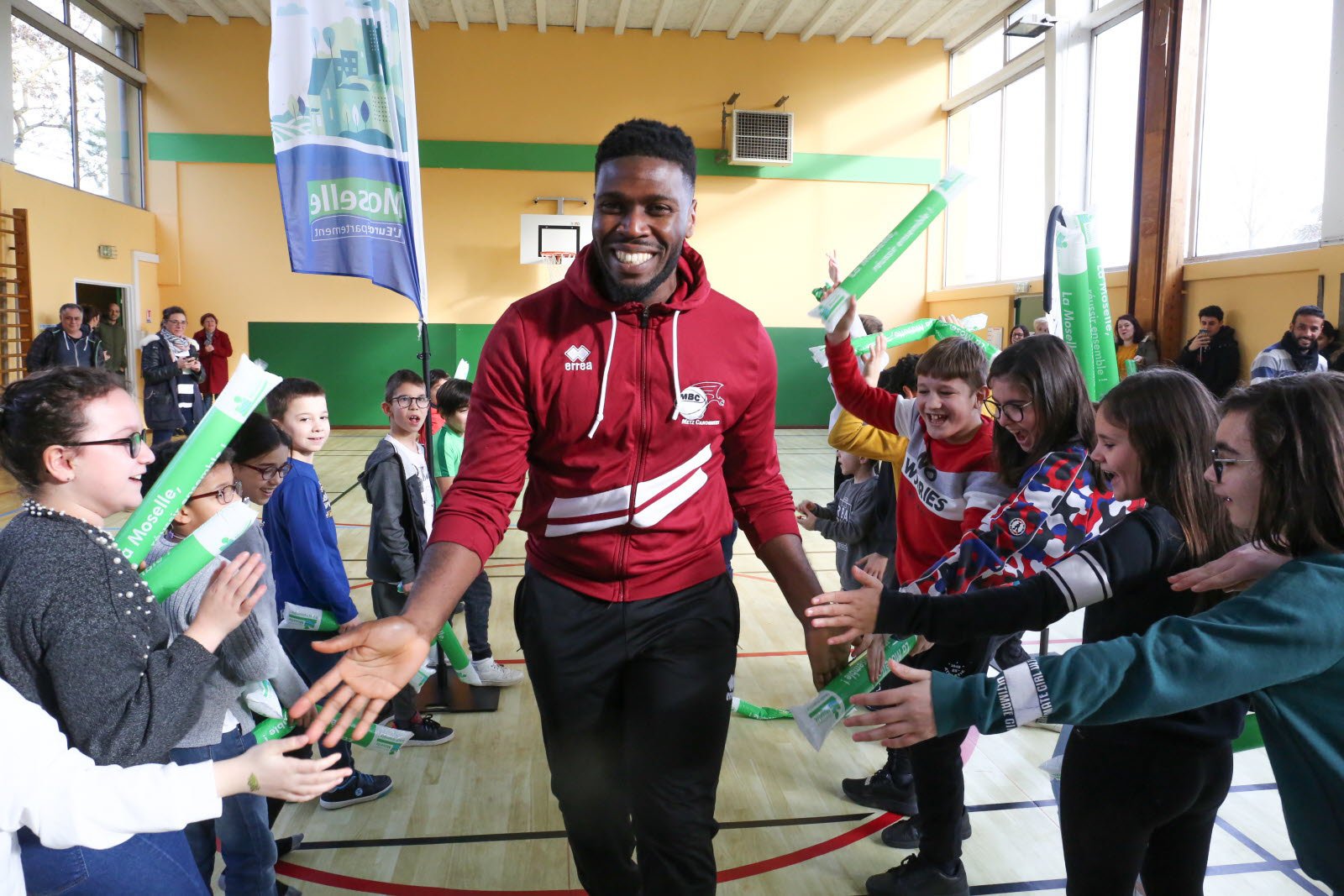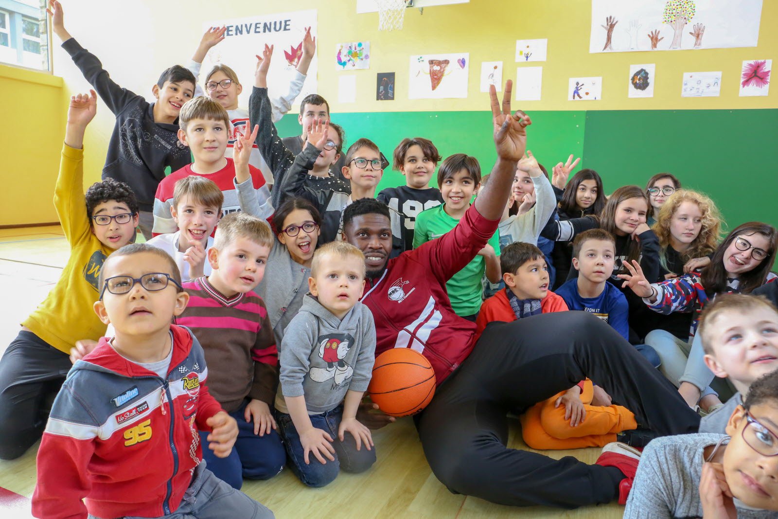 Il a été difficile de capter l'attention des enfants euphoriques, mercredi, au gymnase les Basses Terres de Thionville. Pour cause : la venue d'Henok Affa, joueur de l'équipe de basket des Canonniers de Sainte-Marie Metz qui évolue en nationale 2, le 4e échelon national.